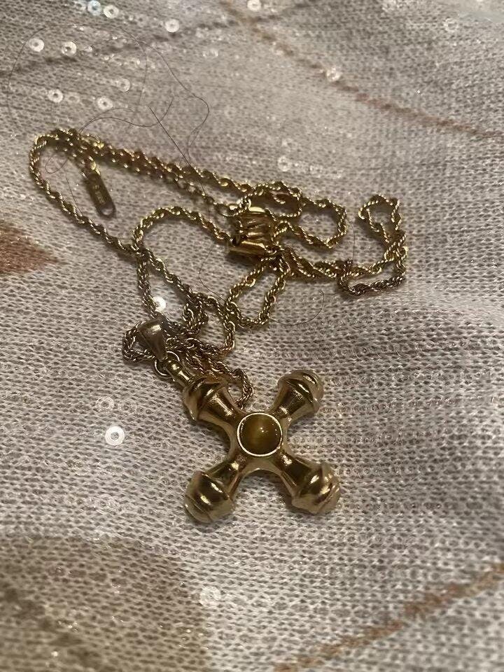Elegant cross pendant crafted from stainless steel with 18K gold plating. Features a natural stone inlay that adds depth and character. Durable and tarnish-resistant for everyday wear. The timeless design works beautifully layered or worn solo. Perfect for those seeking spiritual symbolism with contemporary style.
